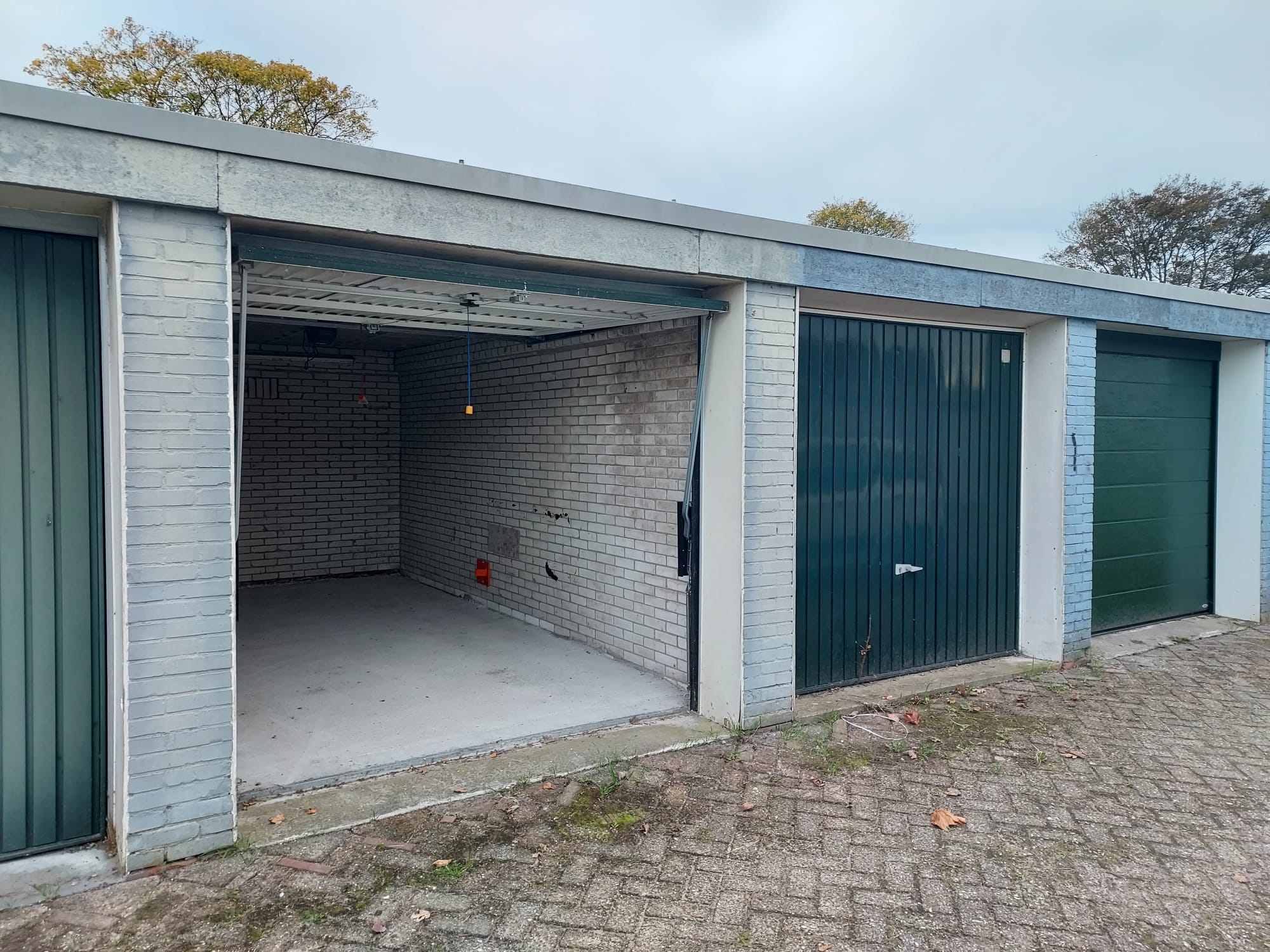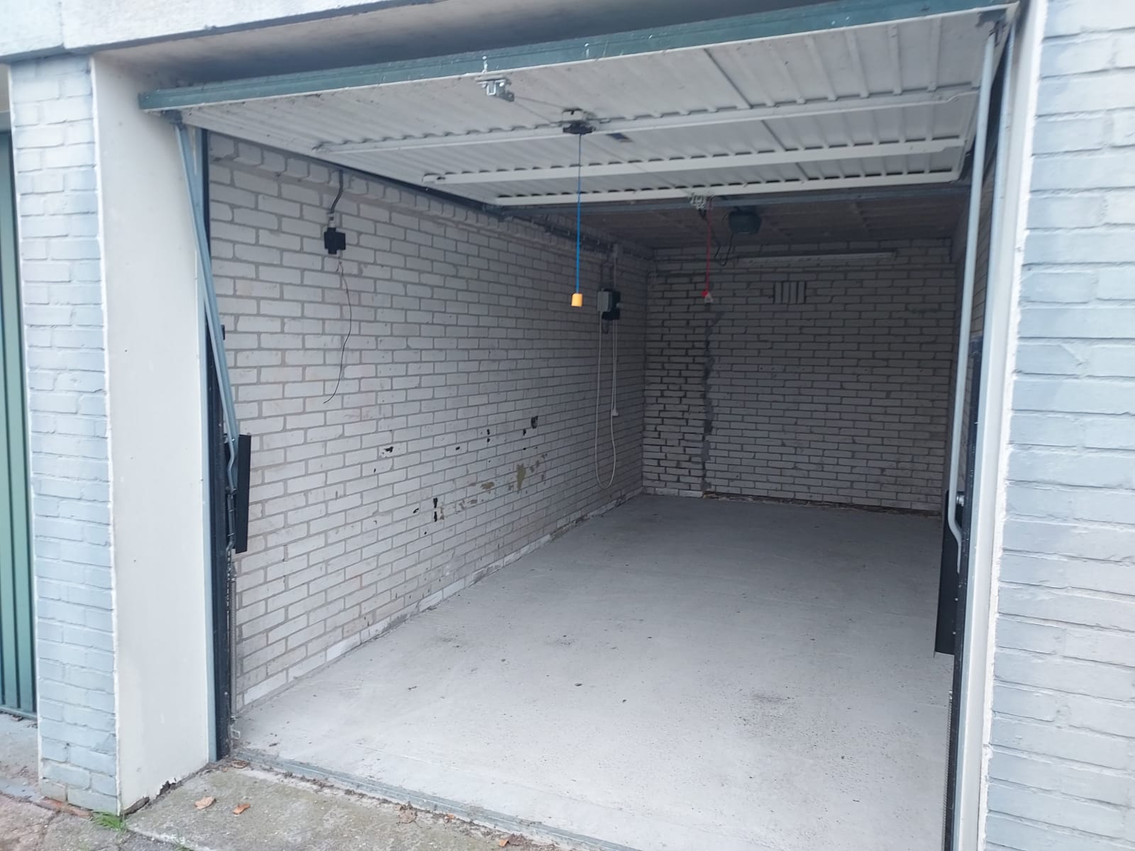 Een nette GARAGEBOX van ca. 5,00 x 2,49 meter met elektrische bedienbare kanteldeur en betonnen vloer, nabij het centrum, gelegen aan de Tamboerlaan in Hoogeveen.